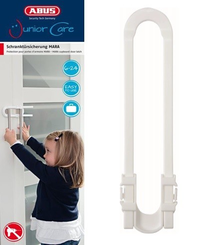 Dětská pojistka proti přivření prstů MARA je vhodná pro dvířka s úchyty. Umožňuje snadnou instalaci bez nutnosti vrtání a použití šroubů nebo lepidla.